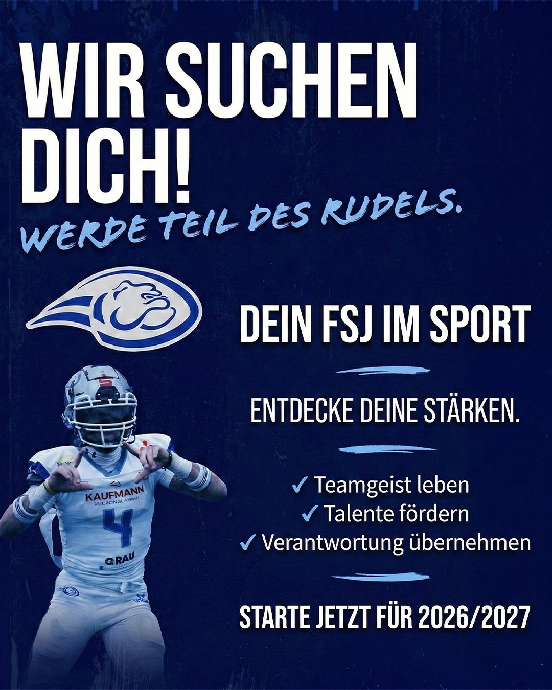 Die Pforzheim Wilddogs bieten dir für das Bildungsjahr 2026/2027 die Chance auf ein Freiwilliges Soziales Jahr (FSJ). Tauche ein in die Welt eines der ambitioniertesten Football-Vereine der Region und unterstütze uns dabei, den Sport im Enzkreis noch bekannter zu machen.